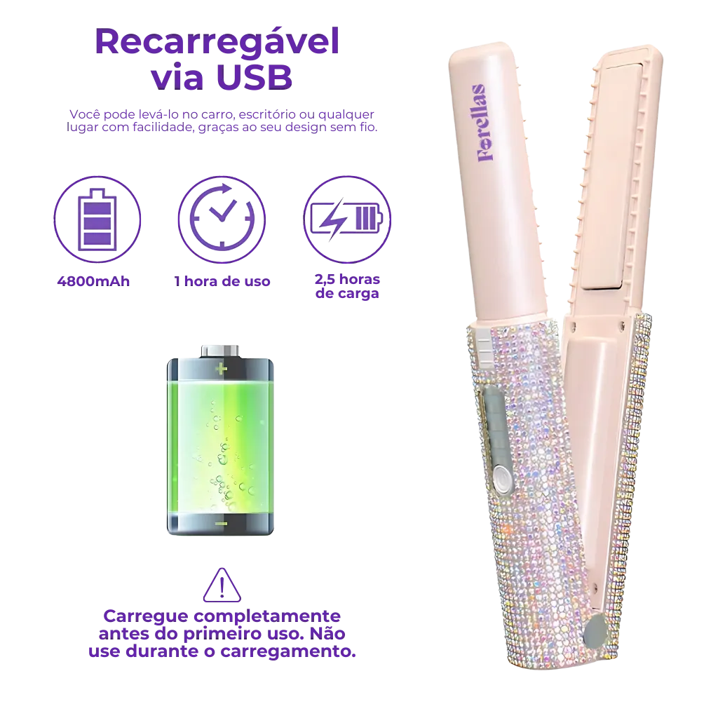 A Mini Chapinha Portátil USB Forellas foi feita para você que busca como alisar cabelo natural com praticidade e estilo onde estiver. Sem fio, leve e pronta para usar até em emergências.