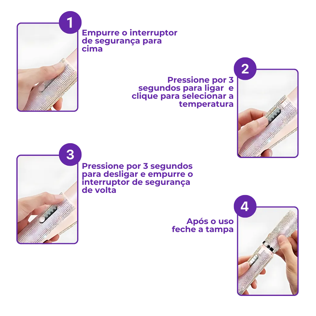 É segura para todos os cabelos?Sim! Conta com 3 níveis de temperatura para diferentes texturas e estruturas.